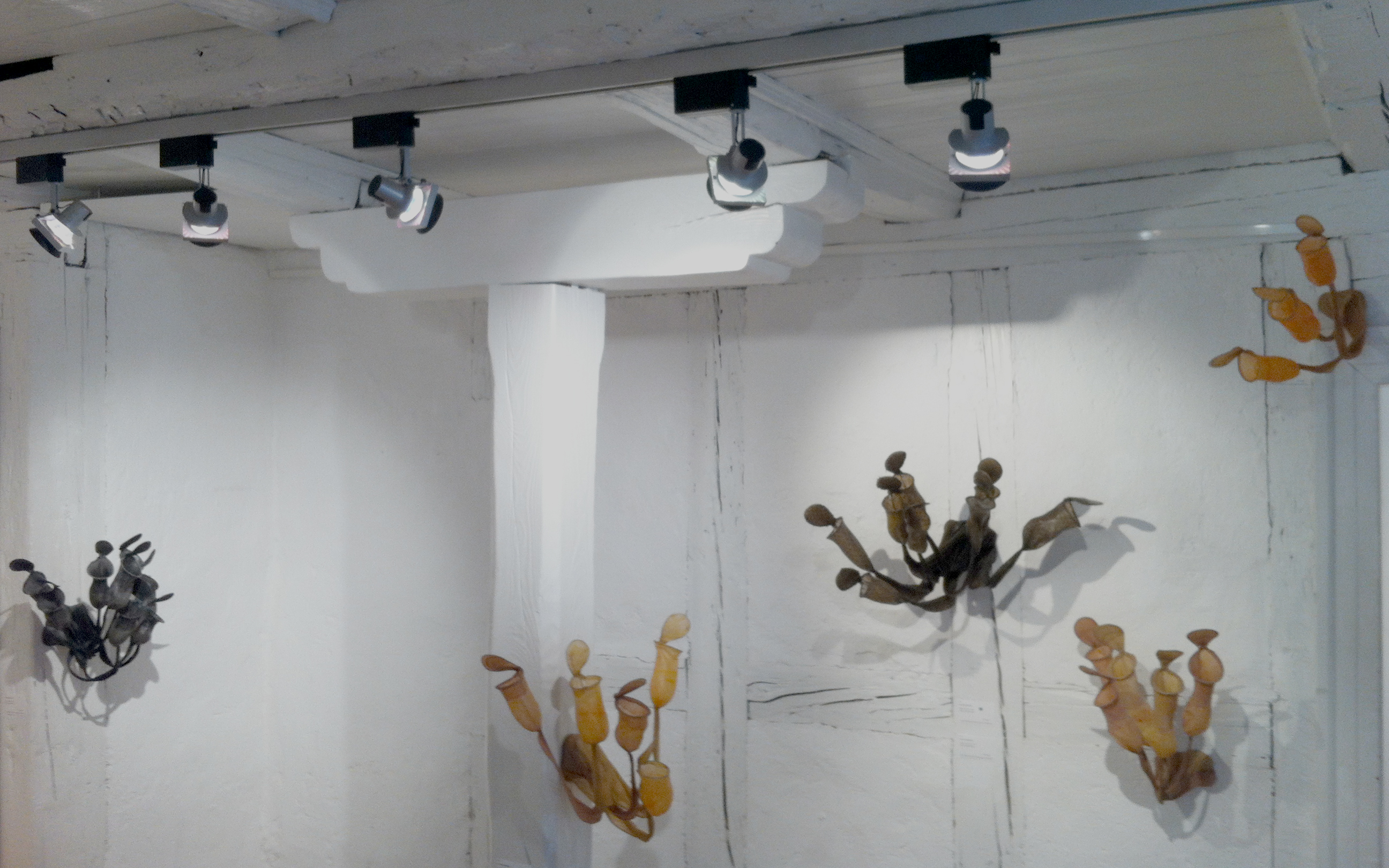 Installationen und Zeichnungen die Phantasie des Besuchers an, der