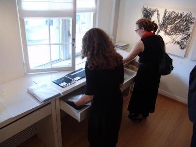Raum 3: Esther Ernst "Sammlung Kerbs" - Installation (Zeichnungen in Holzkästen)
