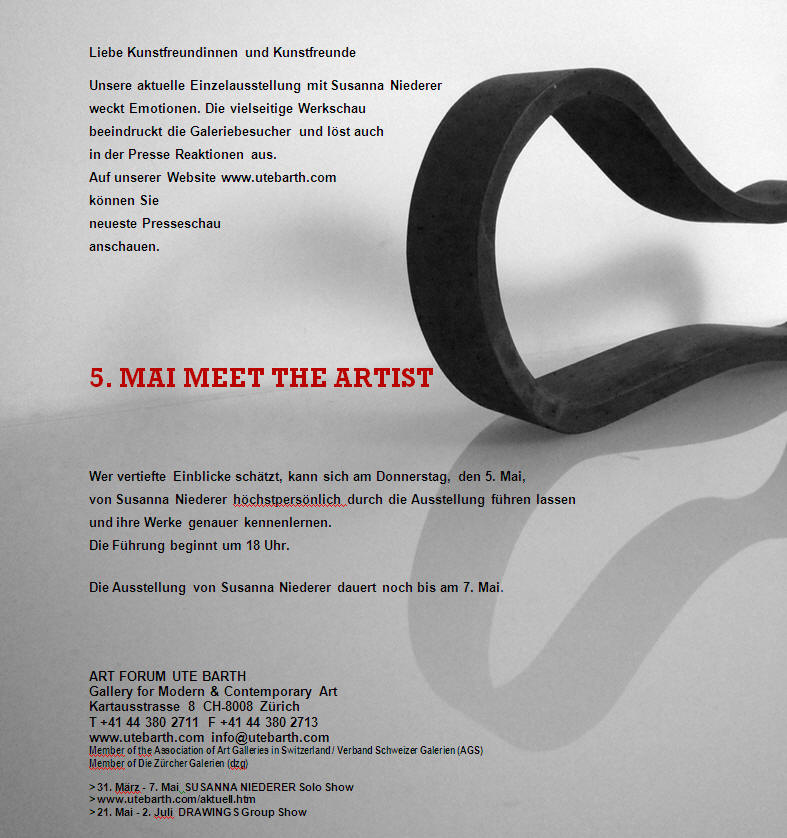 Meet the Artist - Führung mit Susanna Niederer durch die aktuelle Ausstellung 5. Mai 2011 18 Uhr Art Forum Ute Barth, Zürich