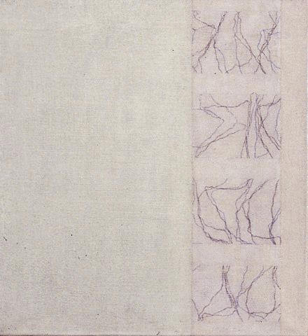 Egg tempera, oil and oil stick on linen