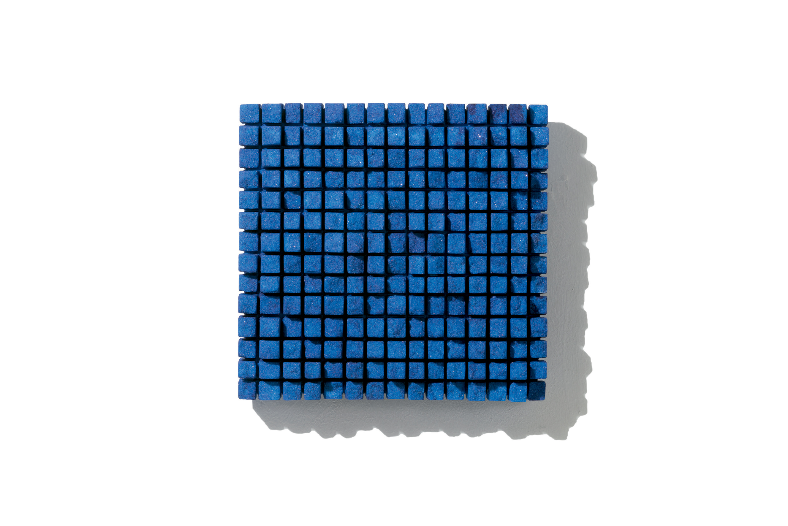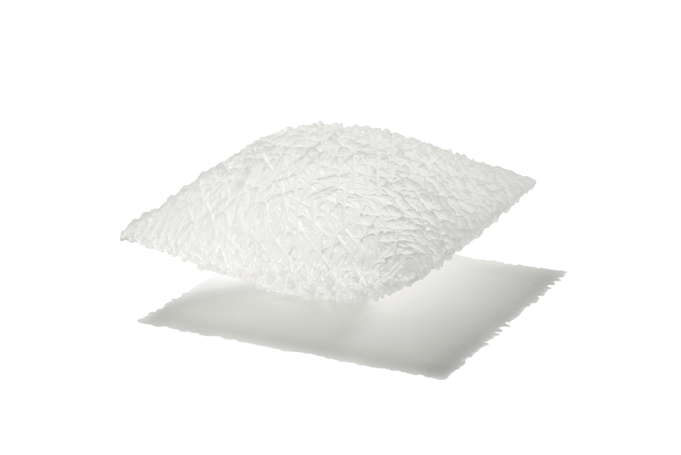 Schon die Einladungskarte überrascht. Alle, die Kränzleins Arbeiten kennen, kommen ins Staunen. Der Bildhauer interessiert sich nun nicht nur für die Form, die Struktur und den Rhythmus des Steins, sondern auch für die Farbe! Auf der Karte ist eindeutig eine perfekte, filigrane Wand-Arbeit von Dieter Kränzlein, aber statt weissem Marmor ist hier eine durch und durch blaue Skulptur zu sehen. Schwarz und grau eingefärbte Muschelkalk- oder Marmor-Werke hatten schon seit einiger Zeit die Natursteinoptik der Skulpturen unterbrochen, aber nun wird es richtig bunt: strahlend rot oder leuchtend grün sind die Exponate, die Kränzlein nach wie vor mit der Flex aus Muschelkalk oder Marmor mit seiner ureigenen Schnitt-Technik fertigt. Kränzlein sieht in der Farbe, neben der Abstraktion, eine weitere wichtige Entfremdungskomponente für seine Werke. Der Stein ist ganz von der Farbe durchdrungen, die Schattierungen, unregelmäßige Strukturen oder Silbereinschlüsse schimmern weiter durch und lassen die Arbeiten bei aller Farbigekeit spannend und lebendig erscheinen. Seit einiger Zeit experimentiert der Künstler, der mittlerweile nicht nur in Europa, sondern auch in Australien und Hongkong in Galerien mit seinen Arbeiten vertreten ist, auch mit Kunstharz. In Zürich wurden diese Kunstharz-Arbeiten vor zwei Jahren das erste Mal gezeigt. Dabei lässt Kränzlein von seinen Stein-Skulpturen Negativformen herstellen, die dann mit Kunstharz ausgegossen werden. Die Transparenz des Kunstharzes lässt jeden Schnitt, jede Textur, jede Faser, die er mit der Flex in den Stein schneidet, sichtbar werden. Das durchsichtige Material macht so den Prozess noch sichtbarer. Wirkten die Steinskulpturen trotz ihres Gewichts durch die ihm typische Schnittart schon filigran, so sind die Kunstharzabgüsse leicht und transparent. Ähnlich in der Formfindung wie ihre steinernen Vorgänger verblüffen die Acrylharz-Skulpturen mit ihrer völlig andersartigen Raumwirkung. Aus gegossenem Kunstharz bestehend schimmern die kompakten Formen wie Eis. Damit greifen sie eine Art von Transparenz auf, wie sie in der Natur gefunden und kaum festgehalten werden kann.