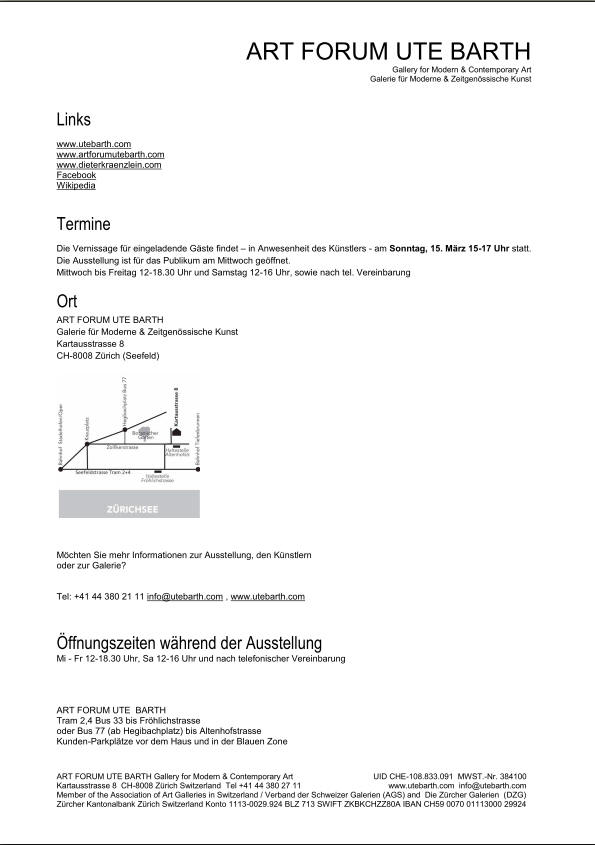 Möchten Sie mehr Informationen zur Ausstellung, den Künstlern Tel: +41 44 380 21 11 info@utebarth.com , www.utebarth.com