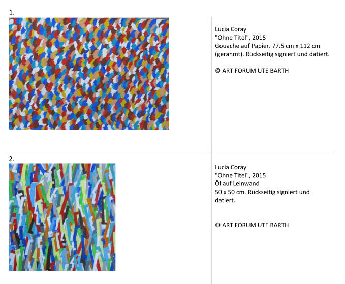 MEDIEN INFORMATION vom 7. Mai 2015 Pressemeldung vom 7. Mai 2015 zur neuen Ausstellung der Zürcher Malerin und Zeichnerin LUCIA CORAY vom 28. Mai bis 27. Juni 2015 @ Galerie Art Forum Ute Barth, Zürich// Gesichter und Menschen // // Figuration und Abstraktion // // Individuum und Masse // Die Zeichnungen und Gemälde von der Zürcher Künstlerin Lucia Coray sind geprägt von linearen Elementen. Das menschliche Gesicht ist meist zentraler Ausgangs- und Referenzpunkt. Kontinuierlich arbeitet die Künstlerin dabei an der Schnittstelle zwischen Figuration und Abstraktion. Die gegensätzliche Bildwelten können sowohl dicht und flächenfüllend als auch zurückgenommen leicht sein und ihre Gemeinsamkeit im Bezug zur Linie finden. Typisch für Corays Werk ist, dass die Arbeiten zugleich figurativ (in der Nahansicht) und abstrakt (mit Abstand gesehen) erscheinen.Seit Beginn der 1980er Jahre baut Lucia Coray ruhig und beständig an einem Werk, das als G esamtprojekt wie ein Nachdenken über das Wesen des Malens und des Menschen als Individuum und als Teil der Masse ist.Ausgangspunkt dieser Entwicklung ist sicher die Tatsache, dass Lucia Coray (geboren 1957 in Zürich) an der F+F, der Schule für experimentelle Gestaltung in Zürich studiert hat. Zu ihren Lehrern gehören mit Anton Bruhin und Hans-Rudolf Lutz, zwei Künstler, die sich in den siebziger und achtziger Jahren intensiv mit Zeichen und Zeichensprache, mit Typographie und Raster beschäftigen. Individualität und Anonymität, Individuum und Masse sind bereits in Corays frühesten Arbeiten Leitthemen. Die Zeichnungen stellen typisierte Köpfe dar, die repetitive Aneinanderreihung nach einem strengen Raster steht im Vordergrund. Dabei setzt sich Lucia Coray aber auch intensiv mit den Schrift- und Zeichensystemen auseinander. Die bildfüllende, menschliche Figur wird dabei nie plastisch, sondern behält sowohl in den Gemälden als auch in den Arbeiten auf Papier die Flächigkeit bei. Die Galerie ART FORUM UTE BARTH zeigt nun im Juni eine umfassende SOLO SHOW der Zürcher Künstlerin, in der ganz neue Zeichnungen und Gemälde (entstanden erst in diesem Jahr und gerade zur Ausstellung fertig geworden), zusammen mit ausgewählten Referenzwerken aus früheren Werkzyklen ausgestellt werden. Lucia Corays Arbeiten sind in den letzten drei Jahren sehr viel farbiger geworden: gelbe, blaue, rote Profile werden nebeneinander aufgereiht, verschmelzen dabei nie ganz miteinander und wirken fast textil. So wie es keine identischen Gesichter gibt, so sind auch die Köpfe Corays bei aller Abstraktion zum Muster stets verschieden. In minuziöser Arbeit reiht sie die einzelnen Köpfe und stilisierten Konterfeis zu Dutzenden aneinander und bildet ein komplexes Bild, ein spannendes, irritierendes Ordnungsraster.Durch ihr ganzes Werk hindurch setzt sich Lucia Coray unaufgeregt mit dem Individuum und der Masse, Individualität und Uniformität auseinander. Der Aspekt des Auf- und Weiterschreibens ist für ihr Werk bestimmend. Lucia Corays Arbeit ist einzigartig, wiedererkennbar - sie ist und bleicht eine der herausragenden Künstlerinnen von Zürich. // Vernissage in Anwesenheit der Künstlerin: Donnerstag, 28. Mai 18-20 Uhr // Contemporary Art Weekend der Zürcher Galerien (ww.dzg.ch) Zürcher Galerien-Wochenende vor der ART BASEL//Am Sonntag, 14. Juni 2015 15 Uhr MEET THE ARTIST @ Art Forum Ute Barth Lucia Coray führt durch ihre Ausstellung