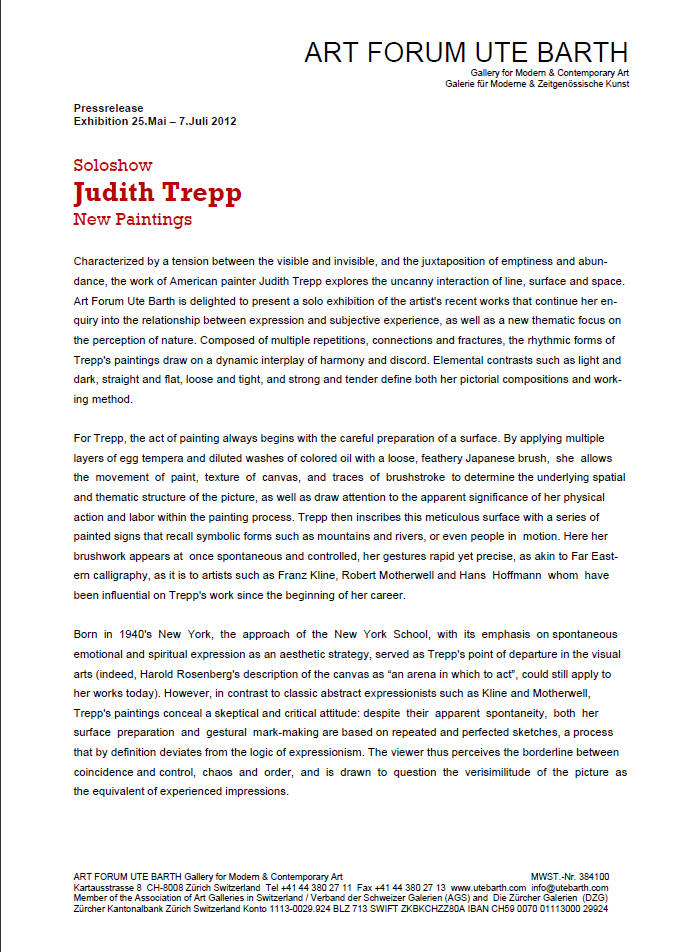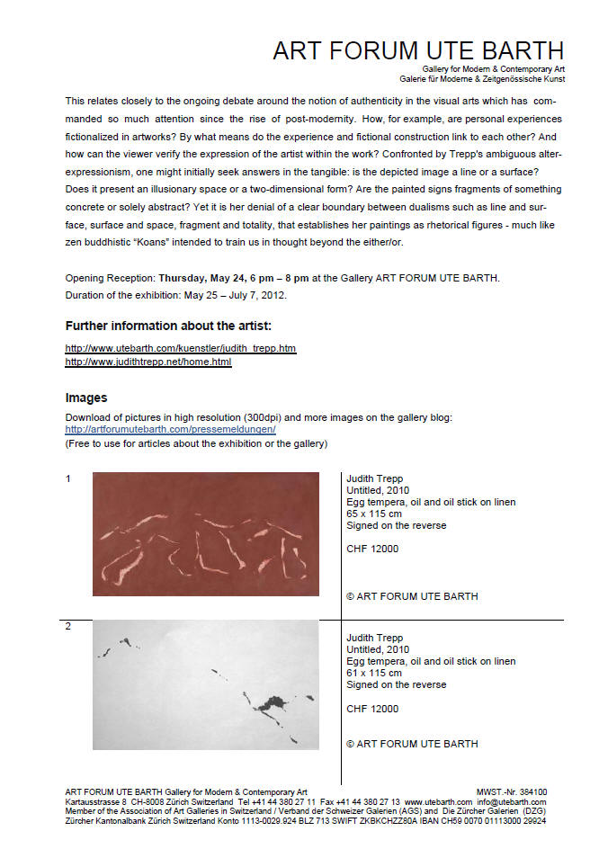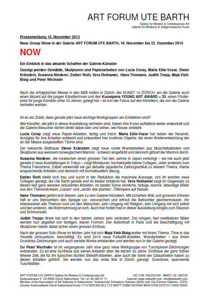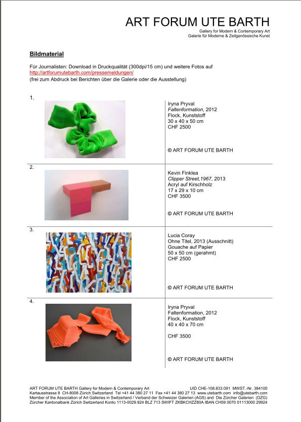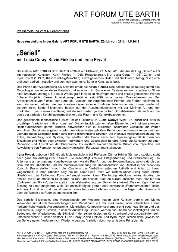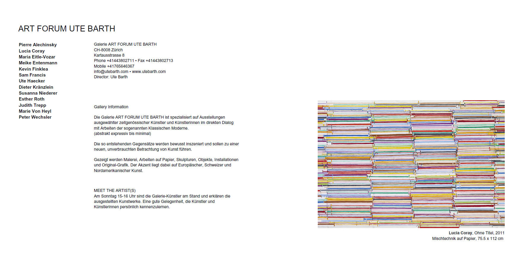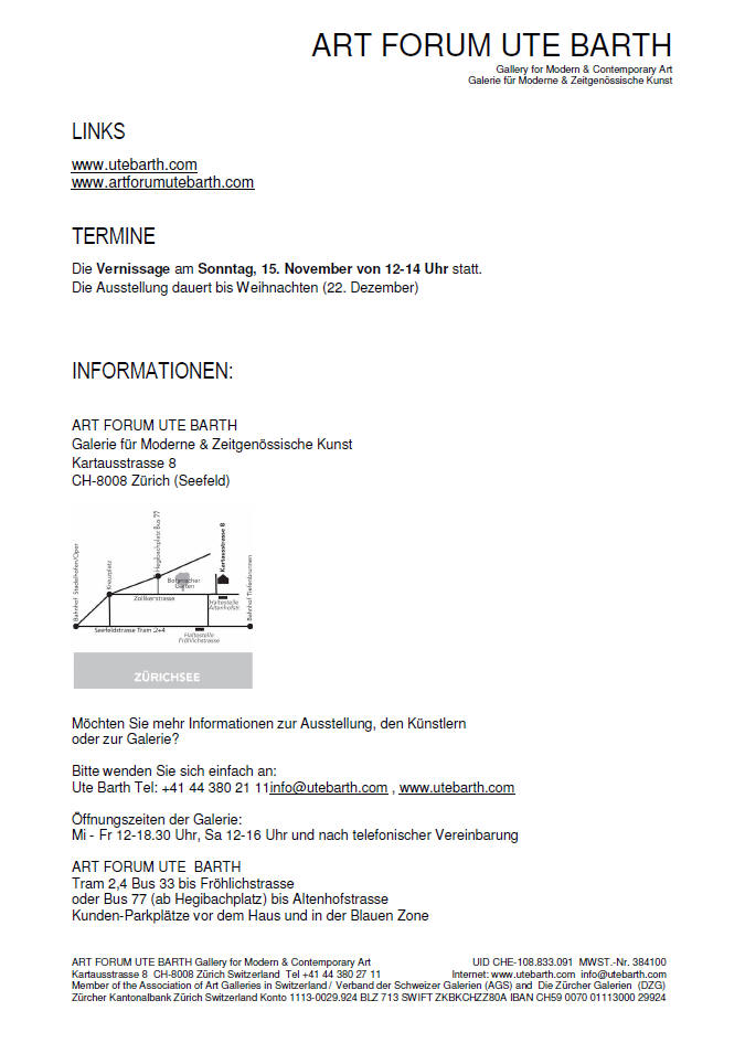 ART FORUM UTE BARTH Kartausstrasse 8 CH-8008 Zürich Schweiz