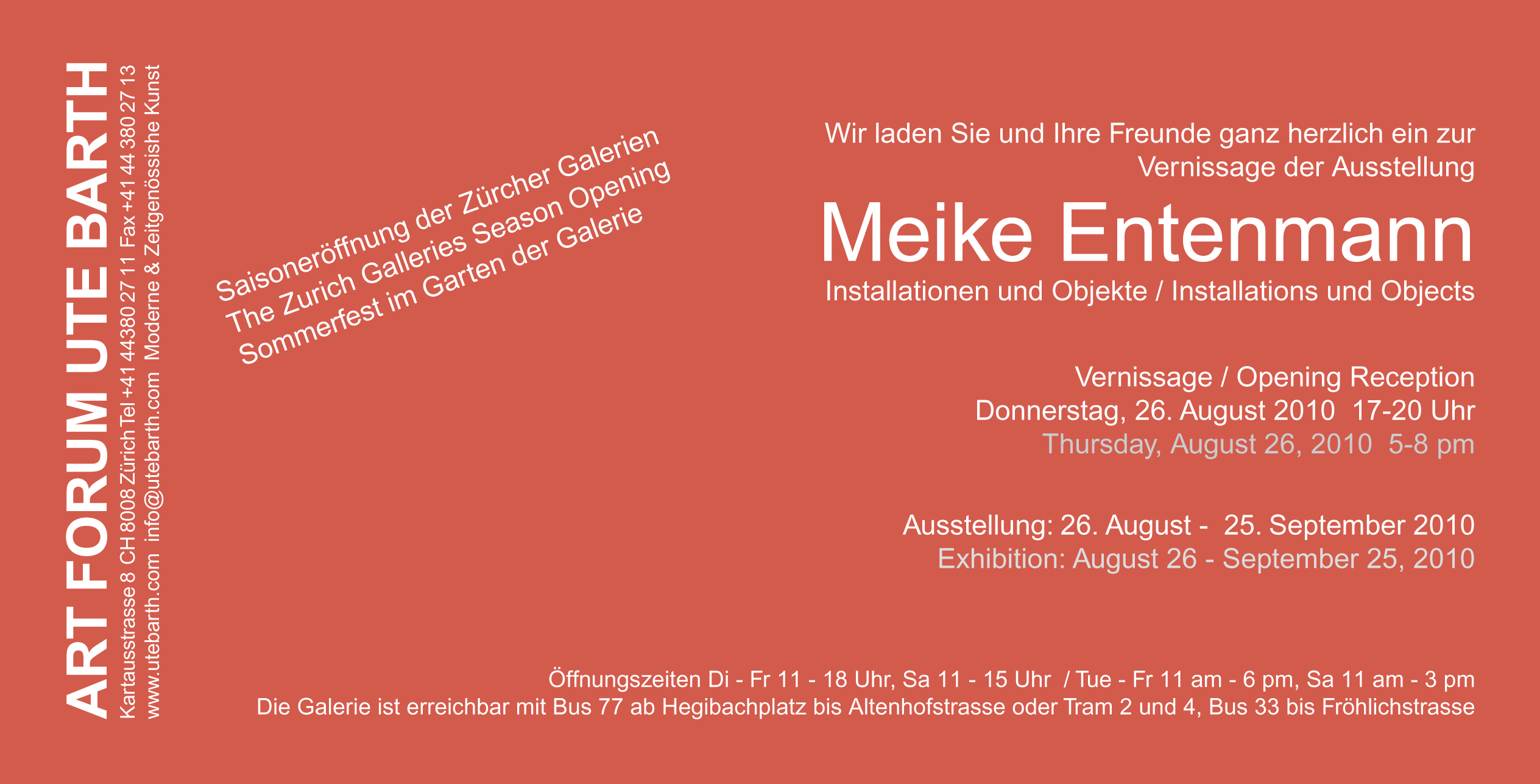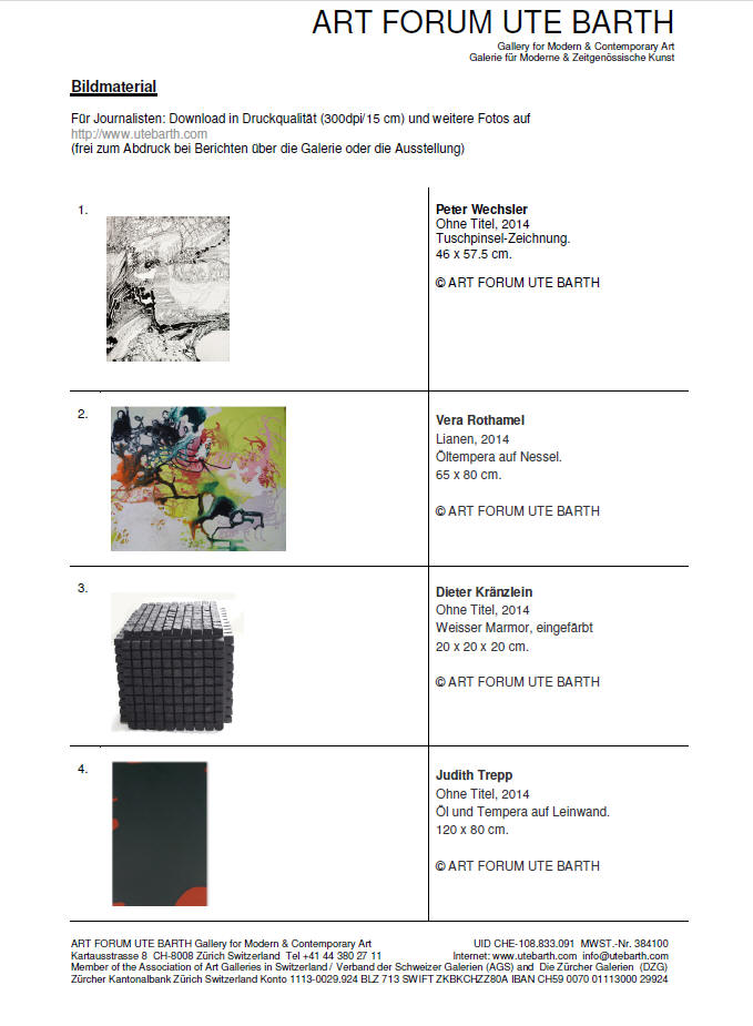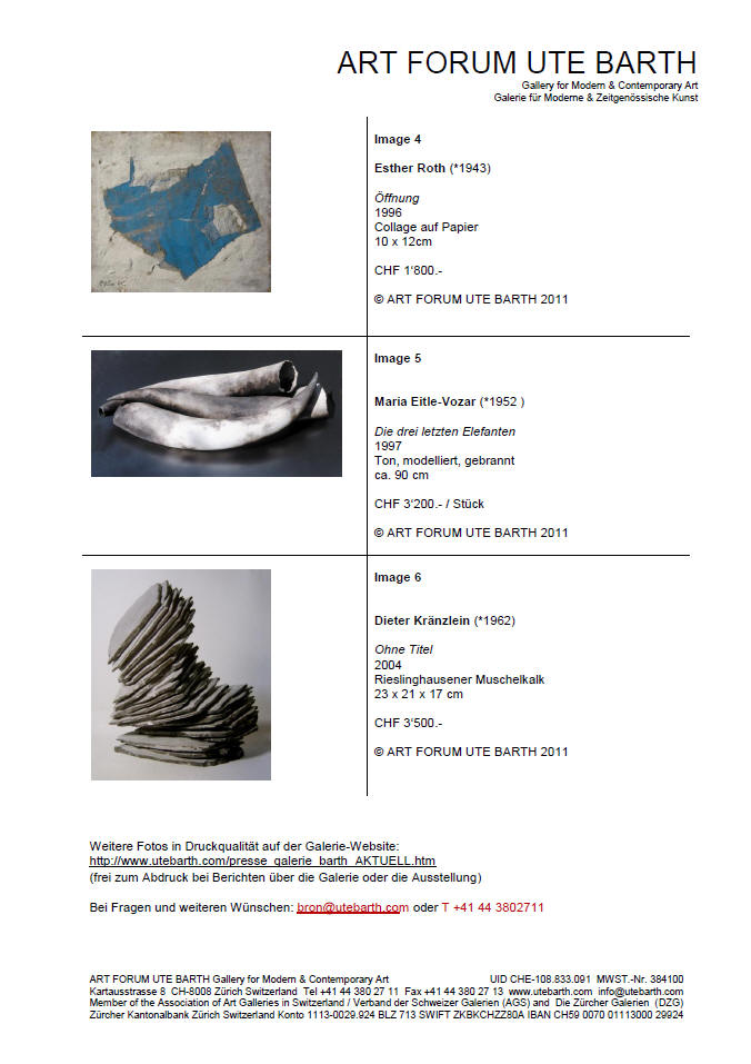 der Zuercher Galerien statt - das ART FORUM UTE BARTH zeigt ein erste
